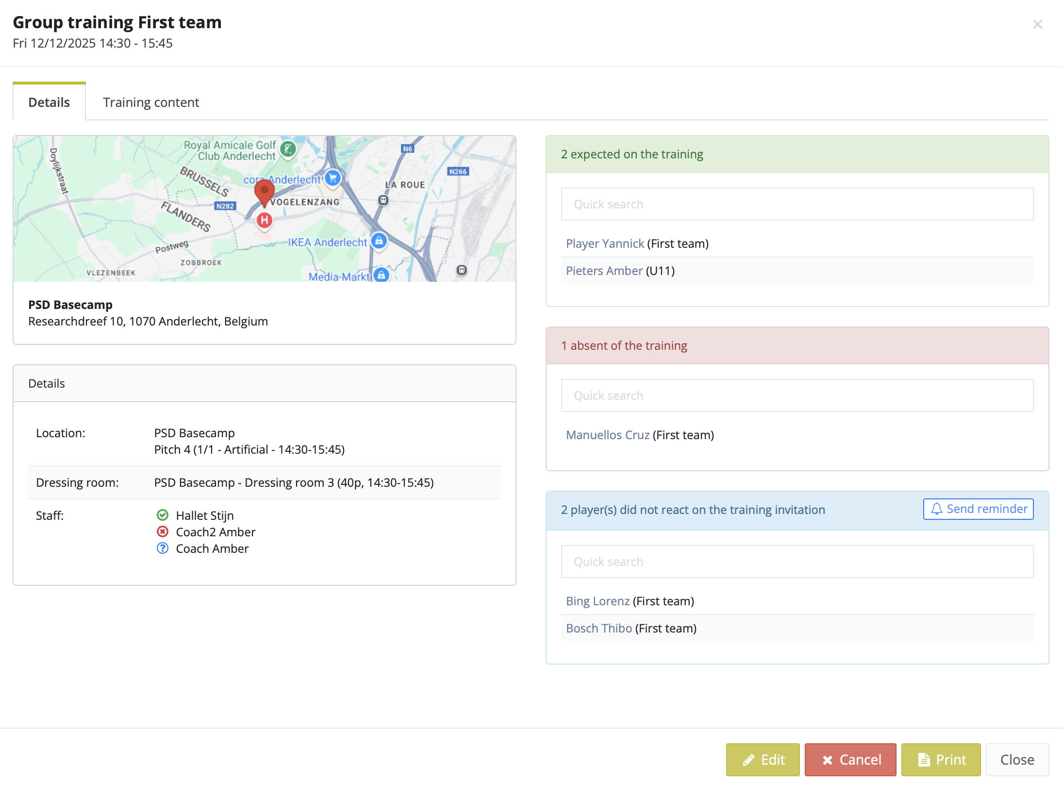 - As a staff member, you can also send a manual reminder to all players who haven’t responded yet.