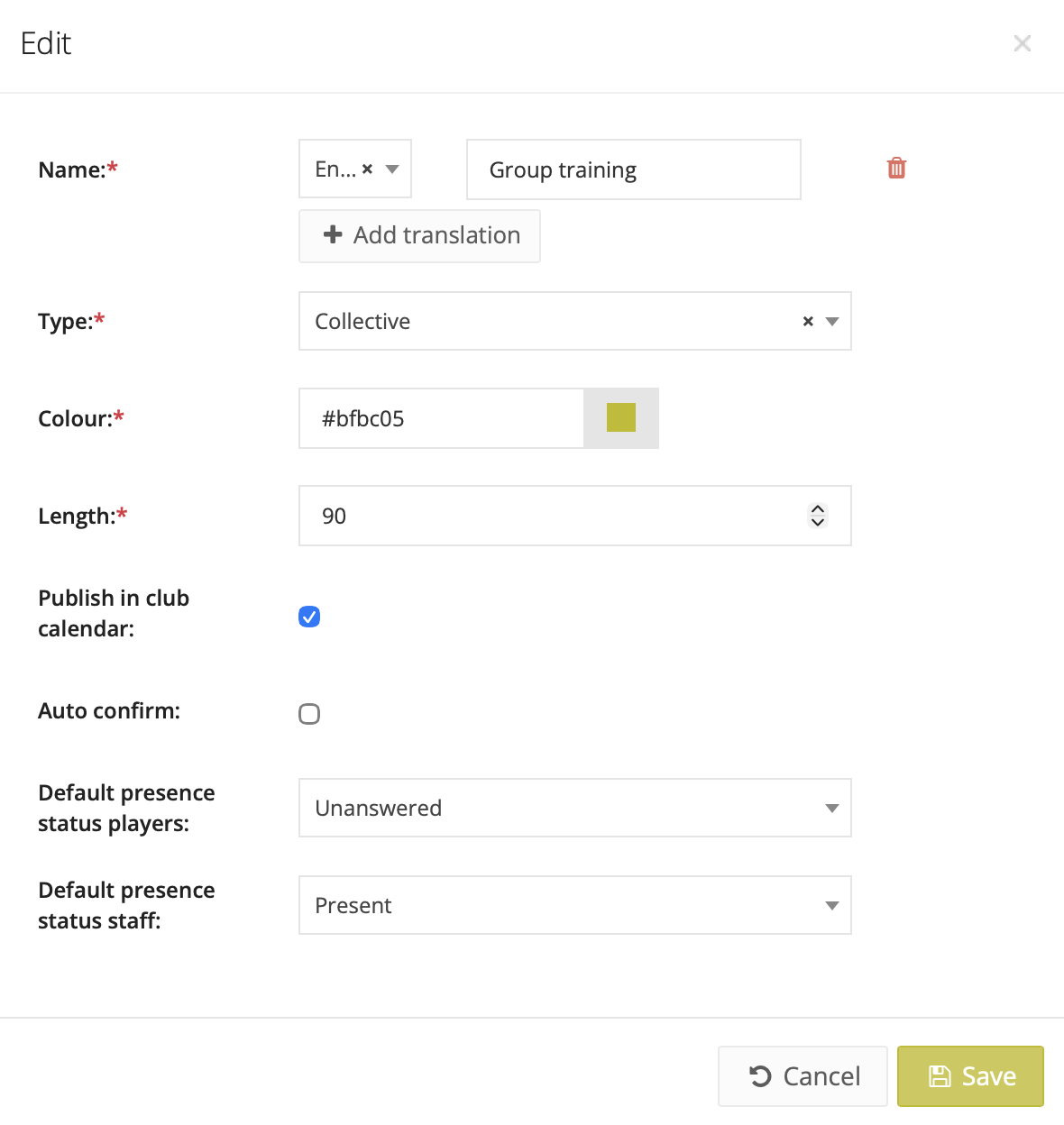 You can also adjust the default at event level when creating a new training session, game, or activity.