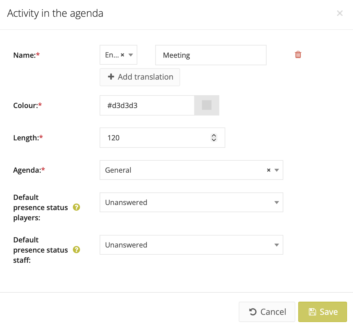 You can now define the default status for players and staff: Present or Unanswered. This can be set per: