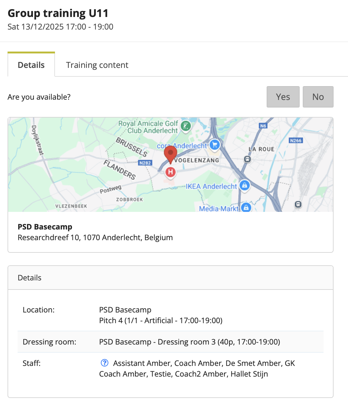 - automatically linked to the team’s training sessions;