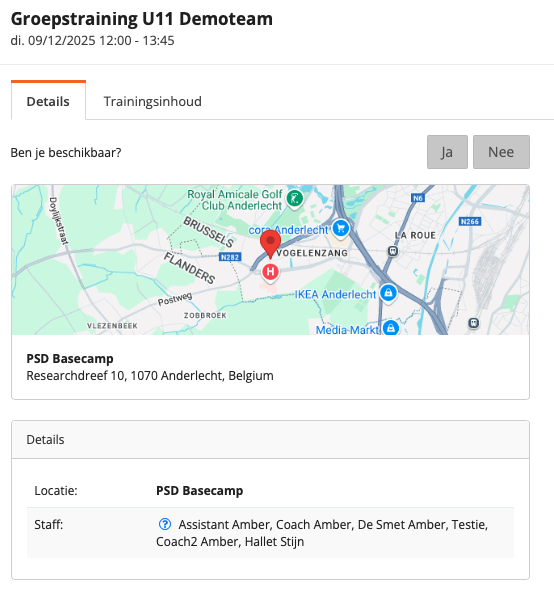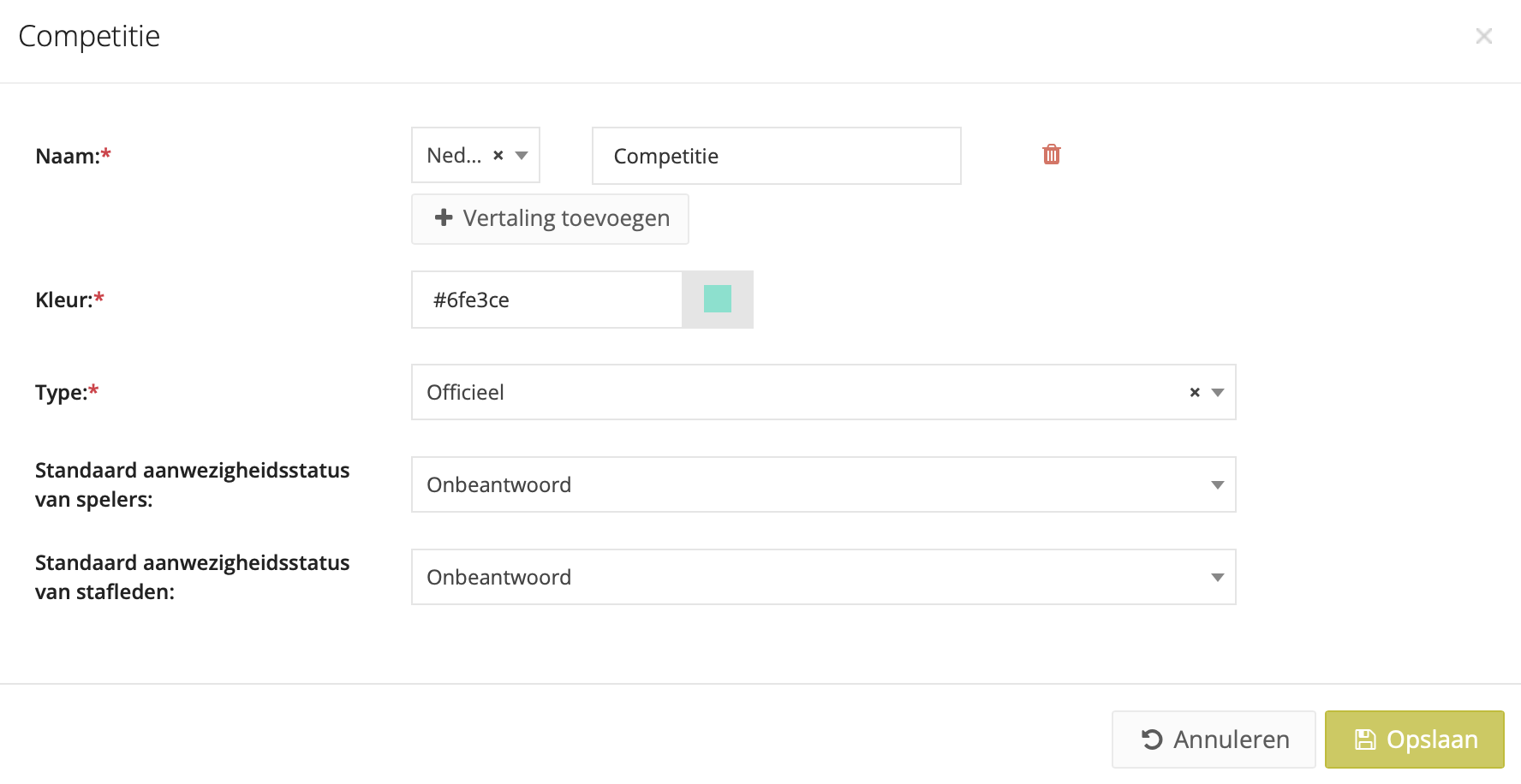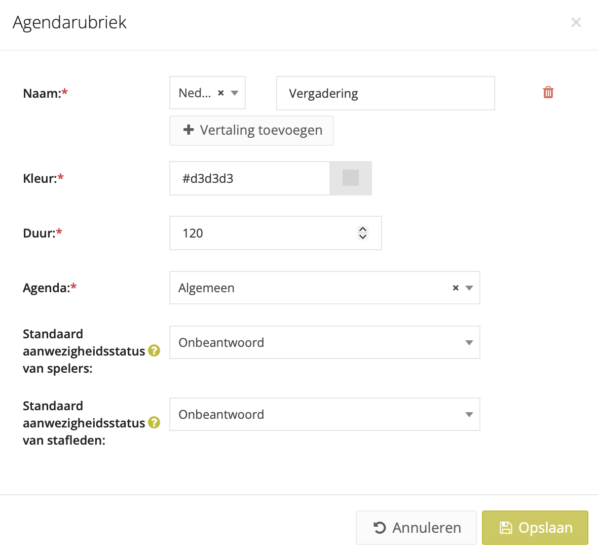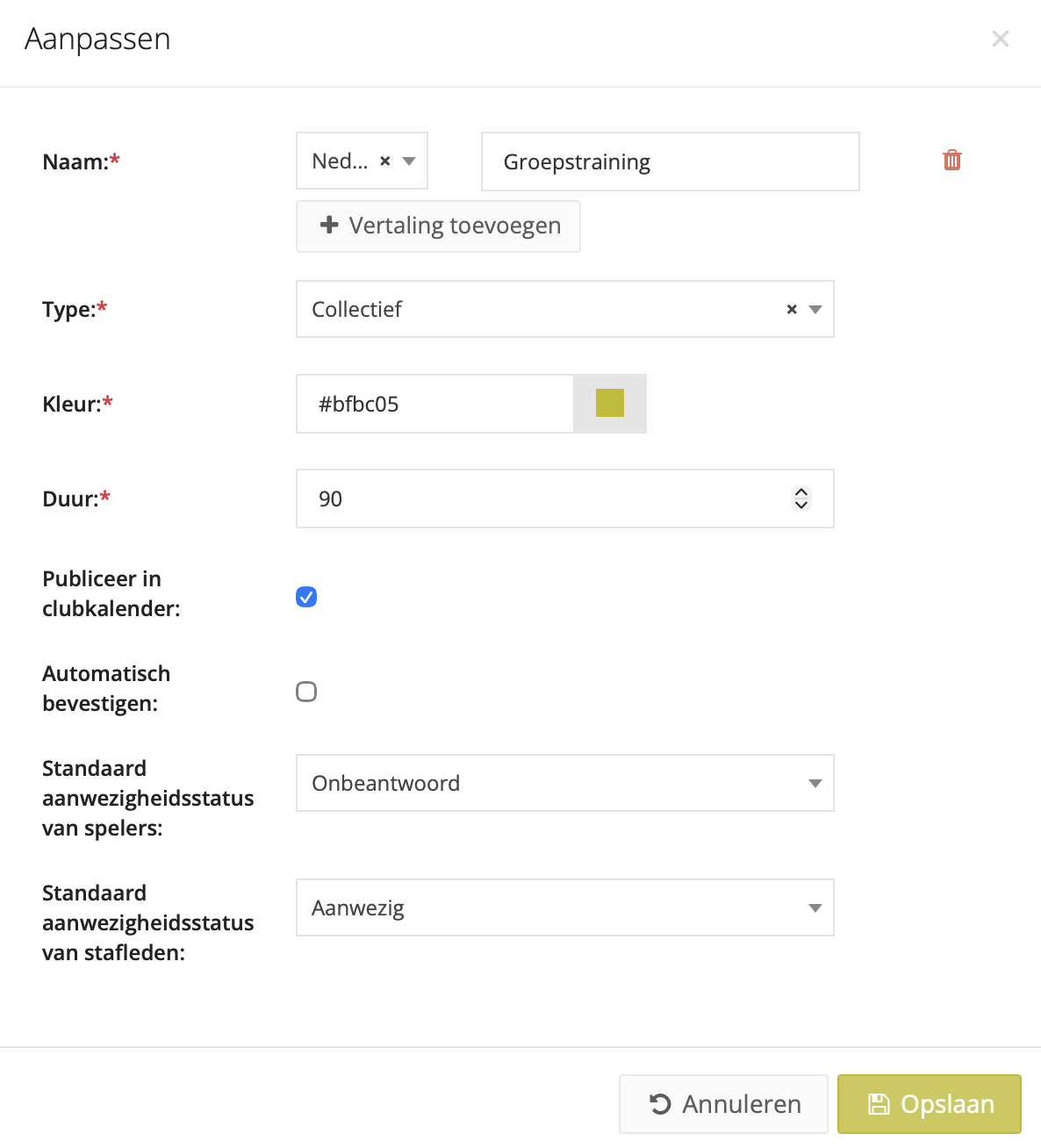 De standaard kan je ook nog aanpassen op event-niveau tijdens het aanmaken van een nieuwe training, wedstrijd of activiteit.