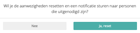 - De aanwezigheden te resetten en een melding te sturen naar iedereen zodat ze opnieuw moeten bevestigen